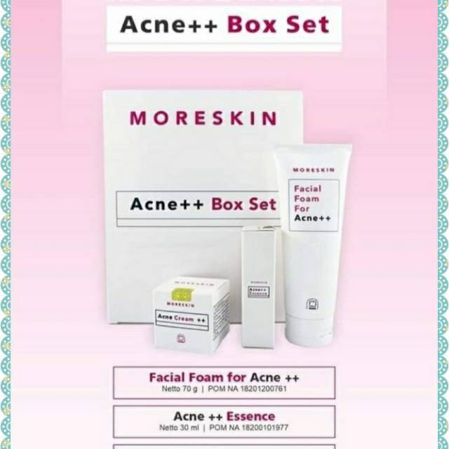 Moreskin acne++ box set merupakan serangkaian produk acne++ series nasa yang dibuat khusus untuk membantu menangani permasalahan wajah akibat jerawat. Acne cream dengan kandungan salicylic acid nya bekerja efektif untuk membasmi white heads, black heads. Acne series is here ready to help you. Somchai acne spot touch gel.