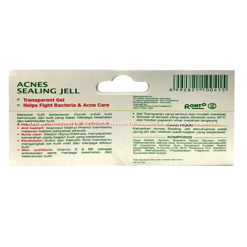 Background. Selain itu, produk ini juga mengandung stearyl. Keluarkan acnes sealing jell secukupnya pada jari, oleskan tipis.