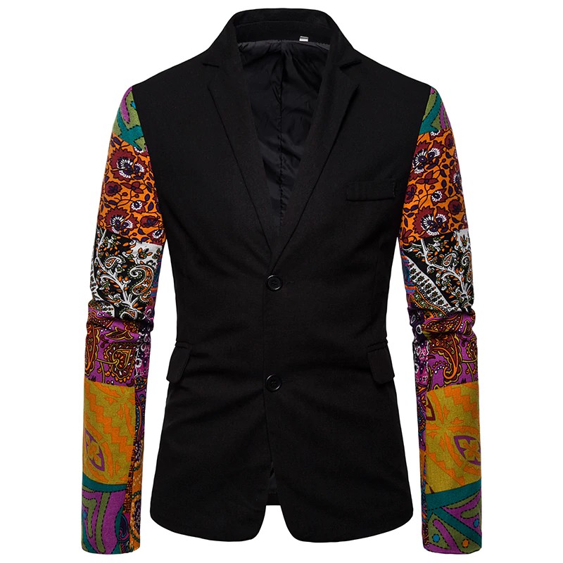 Men Vintage Ethnic Printed Dress Floral Casual Suit Coat Slim Fit Blazer Jacket